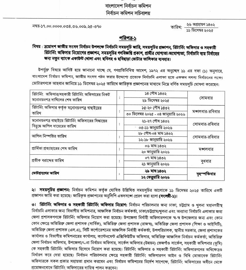 | ২ | ত্রয়োদশ জাতীয় সংসদ নির্বাচন সংক্রান্ত পরিপত্র -০১ | | ১২-১২-২০২৫ | দেখুন | |